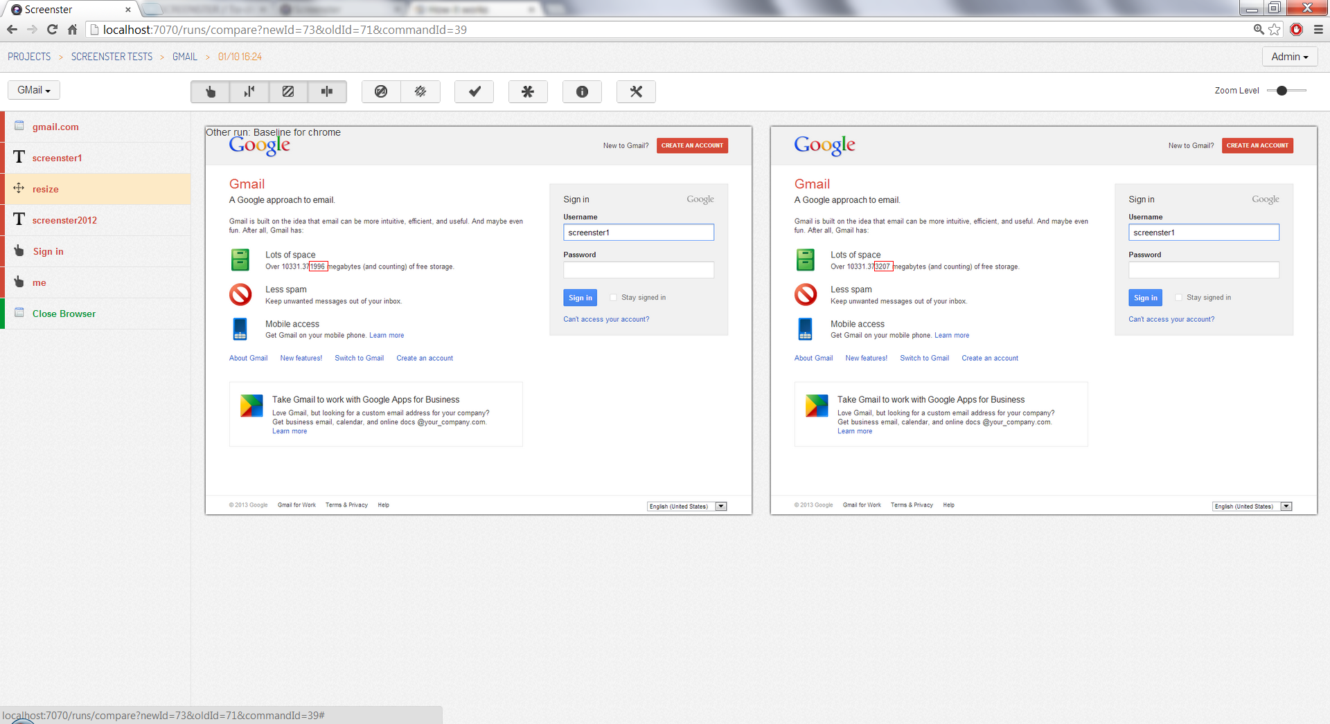 Regression testing is simply runing the recorded scenario from Screenster IDE or our built-in scheduler.